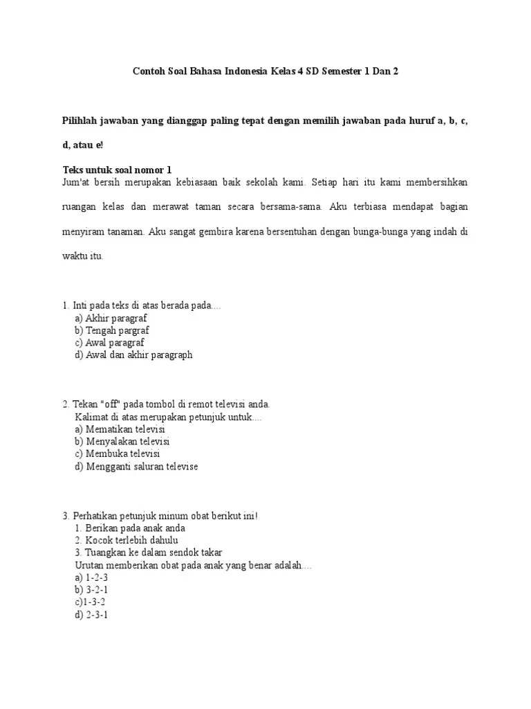 Berilah tanda silang (x) pada huruf a, b, c dan d pada jawaban yang paling benar! Contoh soal uas bahasa indonesia kelas iv sd/mi lengkap dengan jawabannya. Berilah tanda silang (x) pada huruf a, b atau c pada jawaban yang benar! Artikel soal bahasa indonesia kelas 4 untuk sd/mi semester 1/2, pada tahun 2021 lengkap soal pg dan essay, serta dengan kunci jawaban nya. Pikiran pokok paragraf pertama pada bacaan di atas adalah.